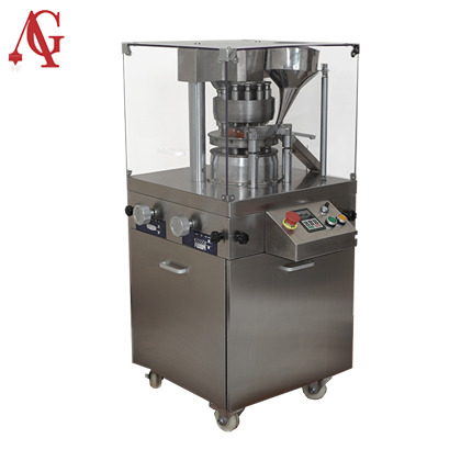 این دستگاه قرص سازی دارای ۵ سنبه است و به صورت دوار کار میکند. قابلیت کار با برق سه فاز را دارد. عملکرد دستگاه طوری است که مواد پودری از مخزن به بخش پایین منتقل و سپس به صورت گردشی به سمت سنبهها هدایت میشود. با نزدیک شدن سنبهها به هم قرص تولید میشود.