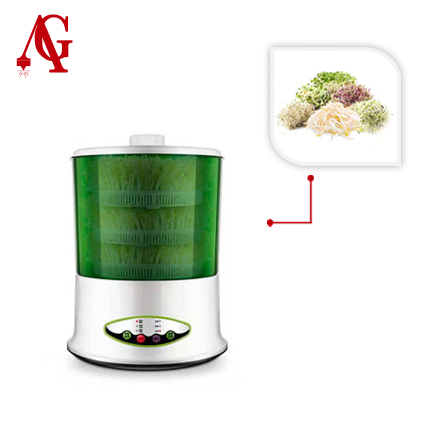 دستگاه جوانهساز AG-VJN-001ازانواع حبوبات،بذر و دانهها مانند: گندم،شبدر، ماش،یونجه،جو و ... طی مدت زمان 2 تا 3 روزه جوانه تولید میکند. این دستگاه مجهز به سیستم آبیاری خودکار است و بعد از افزودن آب و بذر به مخزن، عملیات تولید جوانه را آغاز میکند. ویژگیهای دستگاه جوانه ساز آبیاری خودکار تولید انواع جوانه در 2 الی سه روز قابلیت کارکرد 24 ساعته بدون صدا برق کم مصرف 220 ولت تک فاز دارای کارایی بسیار ساده
