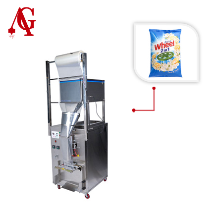 این نوع دستگاه پرکن بسته بندی از دستگاه های پر مصرف در صنایع غذایی و شیمیایی است و قابلیت پر کردن انواع مواد پودری و گرانولی در لفاف بسته بندی با حجم ۲۵ الی ۱۲۰۰ گرم را دارد. نوع دوخت دستگاه بک سیل یا دوخت از پشت است.